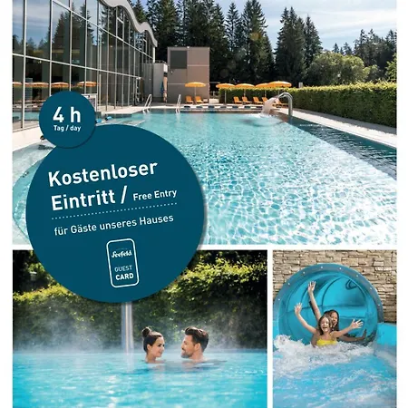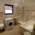 Landhaus Almidyll Appartement appartement|Landhaus Almidyll Appartement heeft een balkon, een terras en een zitruimte en is ingericht met een bank en voorzieningen zoals een flatscreen TV met satellietzenders en TV met meerdere kanalen om van te genieten. Naast een apart toilet en een douche zijn er ook een haardroger en handdoeken in de badkamer.